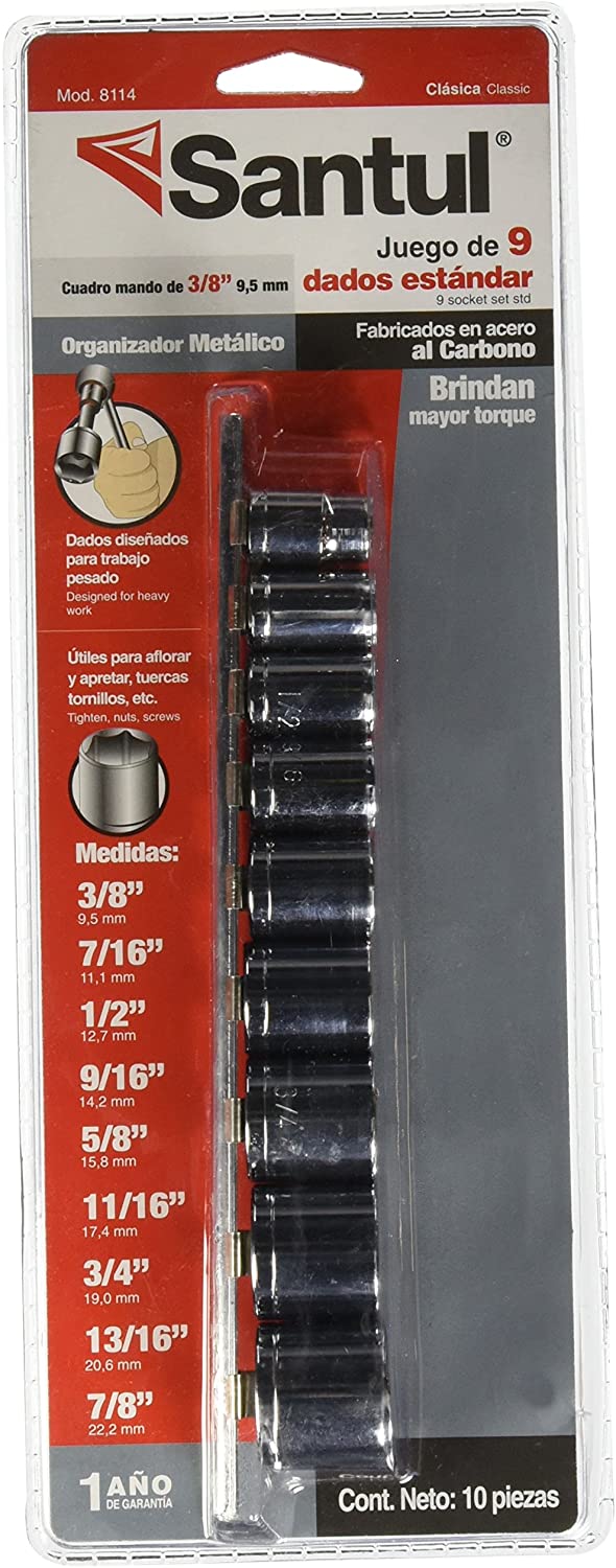 JUEGO DE 9 CUBOS ESTANDAR PARA RATCH DE 3/8 SANTUL